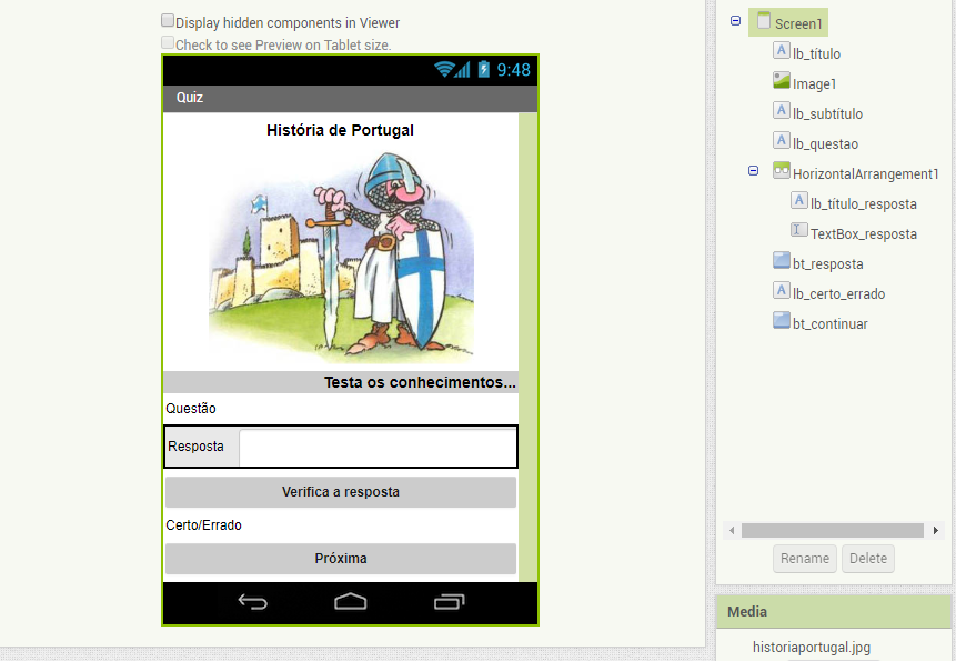 no App inventor, foi criar um Quiz sobre a