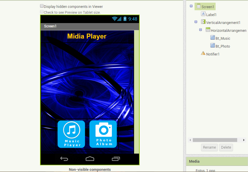 App inventor, foi organizar o layout e trabalhar com imagens e